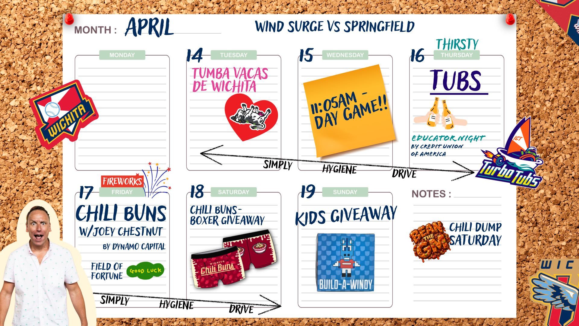 Don’t forget that legendary competitor eater and Hot dog CHAMP Joey Chestnut will be there on Friday (followed by fireworks!)