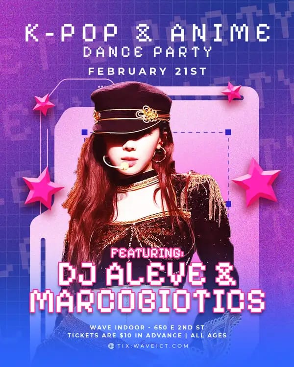 High-energy dance party featuring K-pop hits.